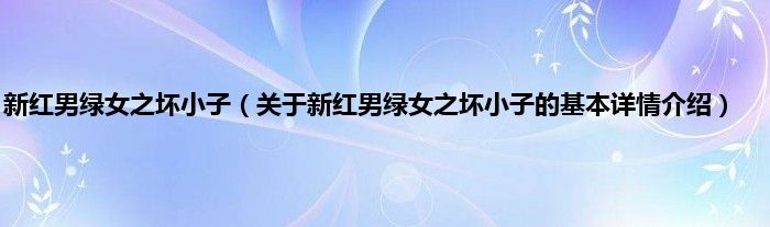 新红男绿女之坏小子(关于新红男绿女之坏小子的基本详情介绍)