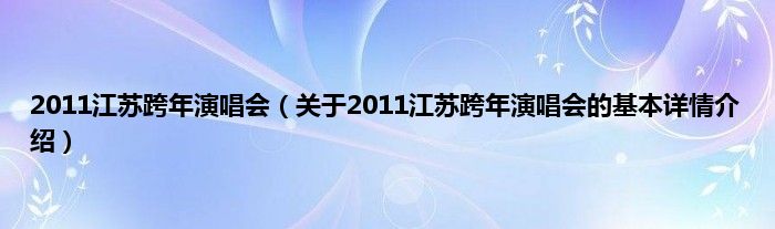 本文关于2011江苏跨年演唱会的基本详情介绍就讲解完毕,希望对大家有所帮助。