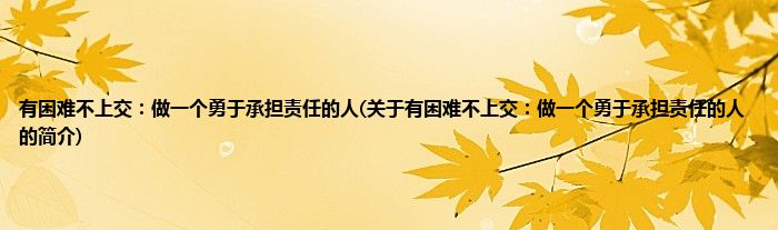本文关于有困难不上交:做一个勇于承担责任的人的简介就讲解完毕,希望对大家有所帮助。