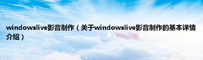 本文关于windowslive影音制作的基本详情介绍就讲解完毕,希望对大家有所帮助。