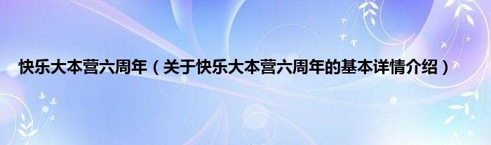 本文关于快乐大本营六周年的基本详情介绍就讲解完毕,希望对大家有所帮助。