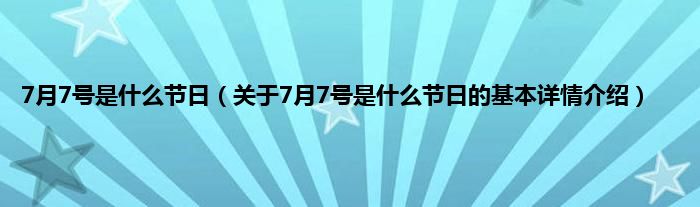 本文关于7月7号是什么节日的基本详情介绍就讲解完毕,希望对大家有所帮助。
