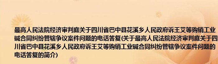 大家好,最高人民法院经济审判庭关于四川省巴中县花溪乡人民政府诉王艾等购销工业碱合同纠纷管辖争议案件问题的电话答复,关于最高人民法院经济审判庭关于四川省巴中县花溪乡人民政府诉王艾等购销工业碱合同纠纷管辖争议案件问题的电话答复的简介很多人还不知道,现在让我们一起来看看吧!