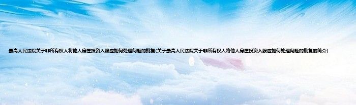 本文关于最高人民法院关于非所有权人将他人房屋投资入股应如何处理问题的批复的简介就讲解完毕,希望对大家有所帮助。
