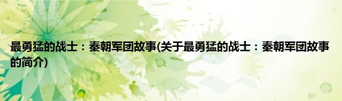 本文关于最勇猛的战士:秦朝军团故事的简介就讲解完毕,希望对大家有所帮助。