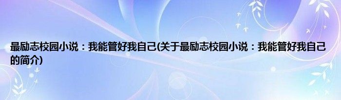 大家好,最励志校园小说:我能管好我自己,关于最励志校园小说:我能管好我自己的简介很多人还不知道,现在让我们一起来看看吧!