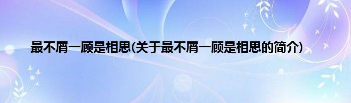 本文关于最不屑一顾是相思的简介就讲解完毕,希望对大家有所帮助。