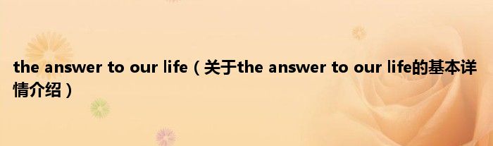 本文关于the answer to our life的基本详情介绍就讲解完毕,希望对大家有所帮助。