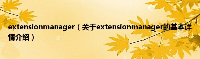 本文关于extensionmanager的基本详情介绍就讲解完毕,希望对大家有所帮助。