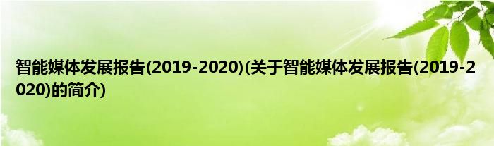 大家好,智能媒体发展报告,2019-2020,关于智能媒体发展报告,2019-2020的简介很多人还不知道,现在让我们一起来看看吧!
