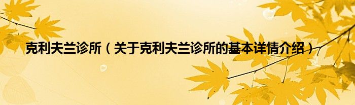 本文关于克利夫兰诊所的基本详情介绍就讲解完毕,希望对大家有所帮助。