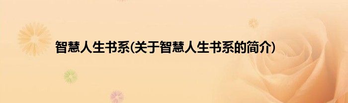 本文关于智慧人生书系的简介就讲解完毕,希望对大家有所帮助。