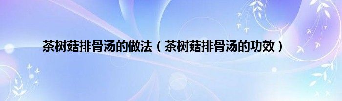 以上就是【茶树菇排骨汤的做法,茶树菇排骨汤的功效】相关内容。