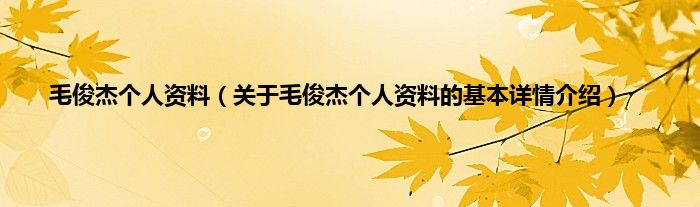 本文关于毛俊杰个人资料的基本详情介绍就讲解完毕,希望对大家有所帮助。