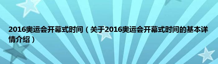 本文关于2016奥运会开幕式时间的基本详情介绍就讲解完毕,希望对大家有所帮助。