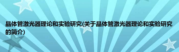本文关于晶体管激光器理论和实验研究的简介就讲解完毕,希望对大家有所帮助。