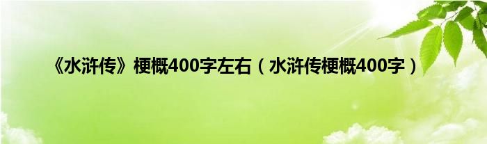 大家好,小问来为大家解答以上问题。《水浒传》梗概400字左右,水浒传梗概400字这个很多人还不知道,现在让我们一起来看看吧!