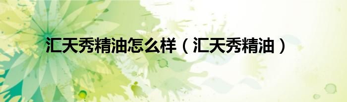 以上就是【汇天秀精油怎么样,汇天秀精油】相关内容。