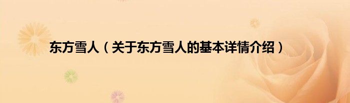 本文关于东方雪人的基本详情介绍就讲解完毕,希望对大家有所帮助。