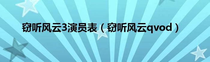 大家好,小问来为大家解答以上问题。窃听风云3演员表,窃听风云qvod这个很多人还不知道,现在让我们一起来看看吧!