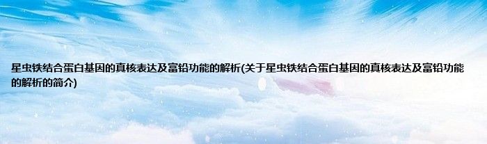 本文关于星虫铁结合蛋白基因的真核表达及富铅功能的解析的简介就讲解完毕,希望对大家有所帮助。