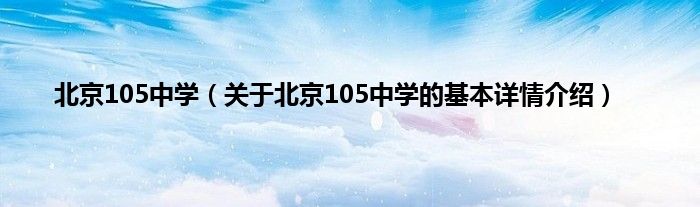 本文关于北京105中学的基本详情介绍就讲解完毕,希望对大家有所帮助。