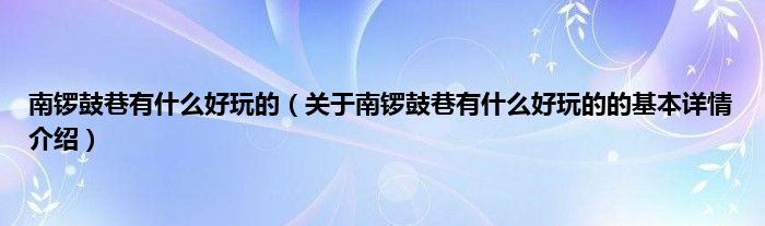 本文关于南锣鼓巷有什么好玩的的基本详情介绍就讲解完毕,希望对大家有所帮助。