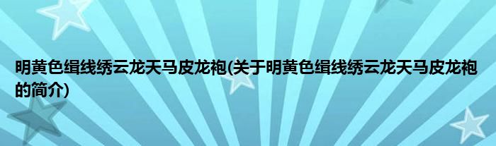 本文关于明黄色缉线绣云龙天马皮龙袍的简介就讲解完毕,希望对大家有所帮助。