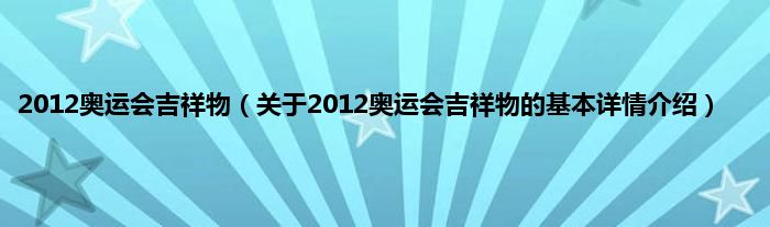 本文关于2012奥运会吉祥物的基本详情介绍就讲解完毕,希望对大家有所帮助。