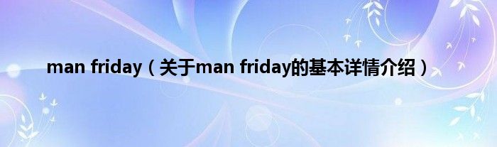 本文关于man friday的基本详情介绍就讲解完毕,希望对大家有所帮助。