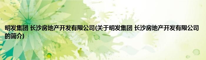 大家好,明发集团 长沙房地产开发有限公司,关于明发集团 长沙房地产开发有限公司的简介很多人还不知道,现在让我们一起来看看吧!