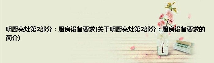 大家好,明厨亮灶第2部分:厨房设备要求,关于明厨亮灶第2部分:厨房设备要求的简介很多人还不知道,现在让我们一起来看看吧!