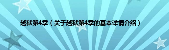 本文关于越狱第4季的基本详情介绍就讲解完毕,希望对大家有所帮助。