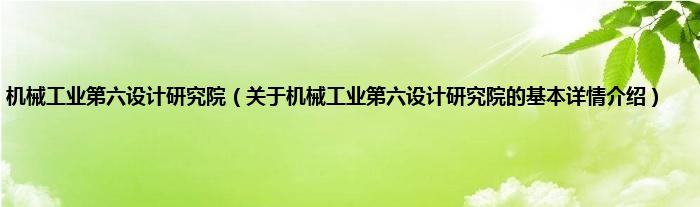 本文关于机械工业第六设计研究院的基本详情介绍就讲解完毕,希望对大家有所帮助。