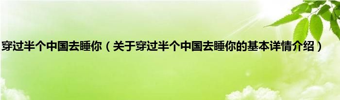 本文关于穿过半个中国去睡你的基本详情介绍就讲解完毕,希望对大家有所帮助。