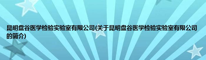 本文关于昆明盘谷医学检验实验室有限公司的简介就讲解完毕,希望对大家有所帮助。