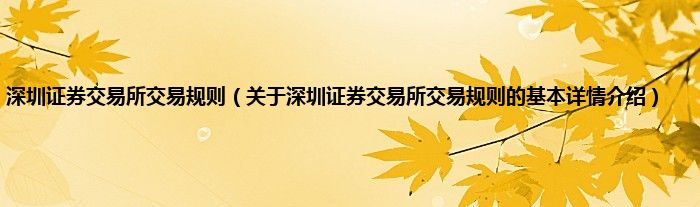 本文关于深圳证券交易所交易规则的基本详情介绍就讲解完毕,希望对大家有所帮助。