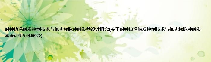 本文关于时钟边沿触发控制技术与低功耗脉冲触发器设计研究的简介就讲解完毕,希望对大家有所帮助。
