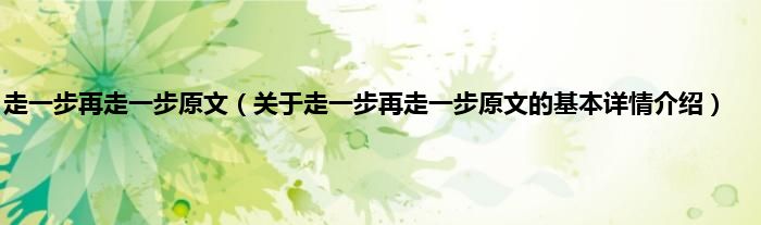 本文关于走一步再走一步原文的基本详情介绍就讲解完毕,希望对大家有所帮助。