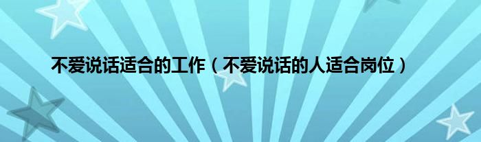 以上就是【不爱说话适合的工作,不爱说话的人适合岗位】相关内容。