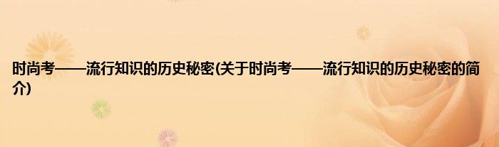 本文关于时尚考——流行知识的历史秘密的简介就讲解完毕,希望对大家有所帮助。