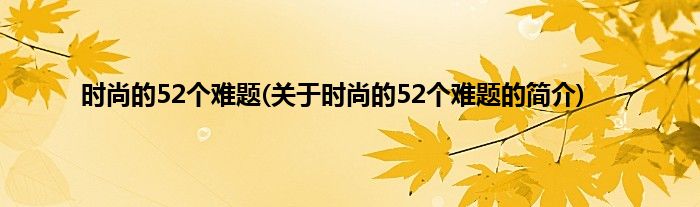 本文关于时尚的52个难题的简介就讲解完毕,希望对大家有所帮助。