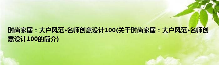 本文关于时尚家居:大户风范·名师创意设计100的简介就讲解完毕,希望对大家有所帮助。