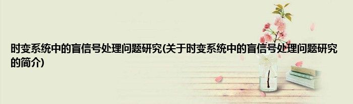 本文关于时变系统中的盲信号处理问题研究的简介就讲解完毕,希望对大家有所帮助。