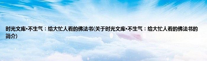 本文关于时光文库·不生气:给大忙人看的佛法书的简介就讲解完毕,希望对大家有所帮助。
