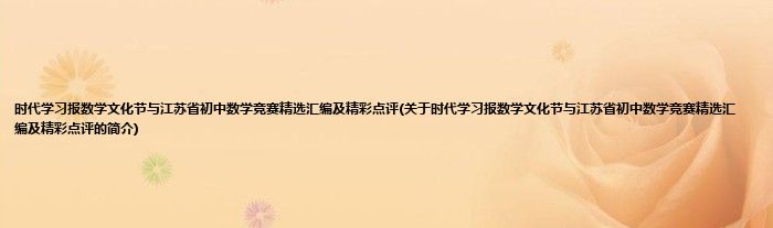 大家好,时代学习报数学文化节与江苏省初中数学竞赛精选汇编及精彩点评,关于时代学习报数学文化节与江苏省初中数学竞赛精选汇编及精彩点评的简介很多人还不知道,现在让我们一起来看看吧!