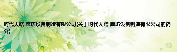本文关于时代天路 廊坊设备制造有限公司的简介就讲解完毕,希望对大家有所帮助。