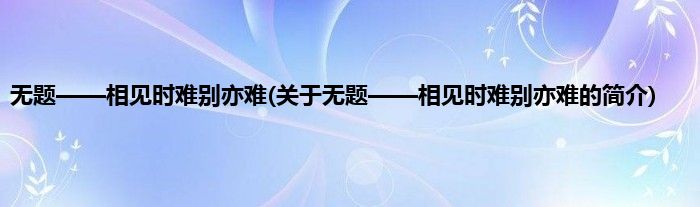 本文关于无题——相见时难别亦难的简介就讲解完毕,希望对大家有所帮助。