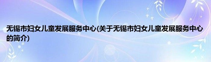 本文关于无锡市妇女儿童发展服务中心的简介就讲解完毕,希望对大家有所帮助。