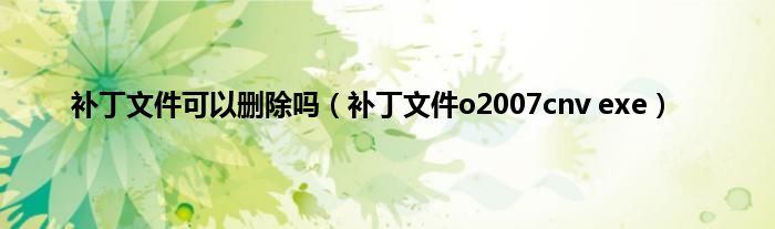 以上就是【补丁文件可以删除吗,补丁文件o2007cnv exe】相关内容。
